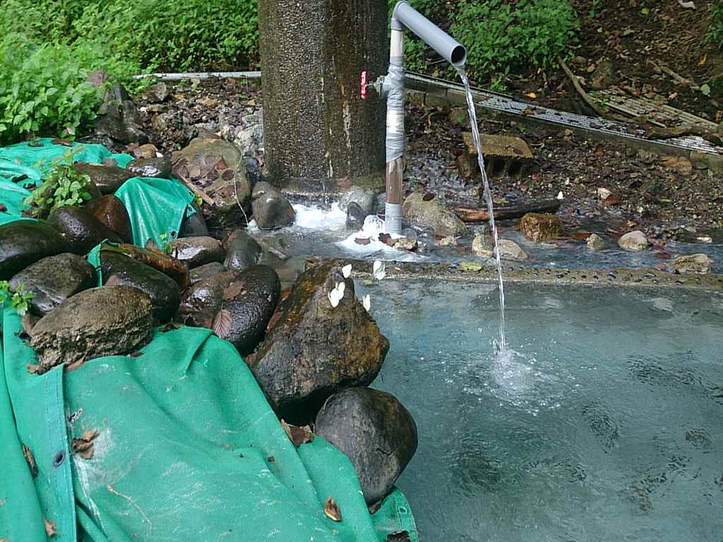 何?この山奥にパソコンだと? しかも、yahooがデテルジャマイカ。嘘だろーこの山奥にISDNすらねーはず・・・ まその話はいいや。 中の話しね、内湯の湯船は男女の浴槽が逆だったので、ちょうど山側が男性がわだったと記憶している。湯船にはライオンの口から給湯されていて(そうそうこのロマネティックなヤレ具合)室内はかわってないな、内湯は分離、露天風呂は、半混浴、源泉槽は混浴(10度しかない) そんな仕様になっていました。源泉槽は5平方メートルあり、モンシロチョウが何かの養分をとりにたくさん集まってるような不思議な浴槽となっています。